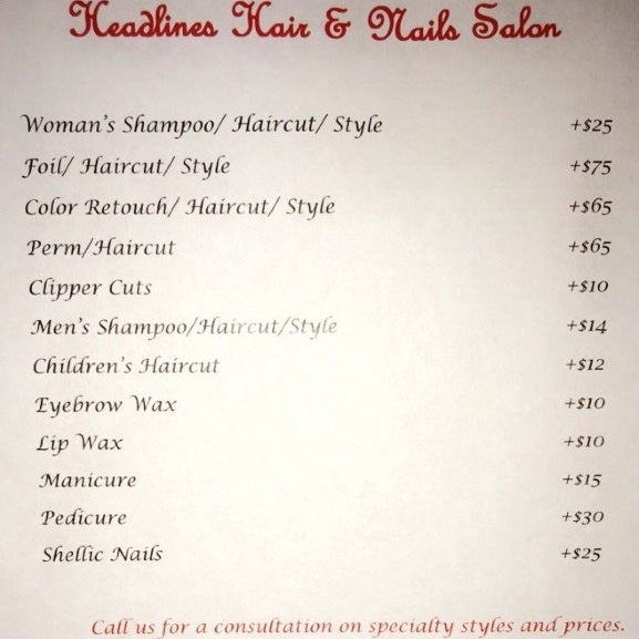 Please call to make an appointment. Our extensive list of salon services and our low prices get guests in the door and keep them coming back for more. Headlines Hair and Nail Salon.